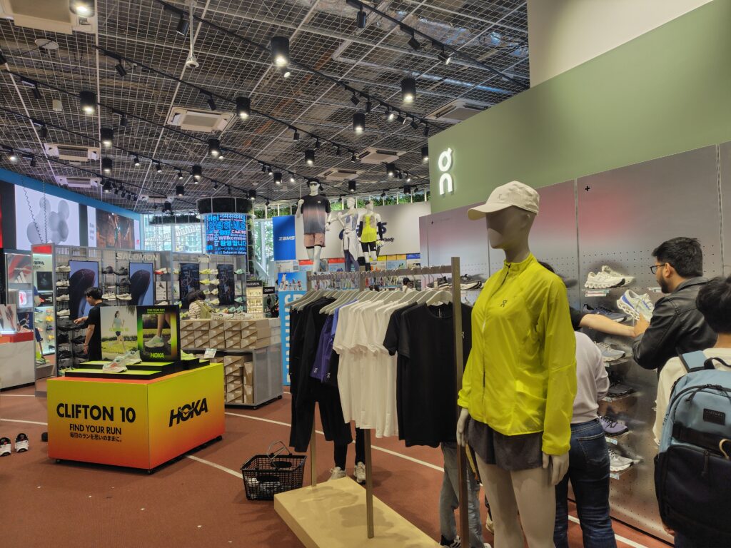 いやーそれにしてもさすが聖地。ほぼ全種類のランニングシューズやグッズがサイズもカラーも豊富にあって大興奮!私が「次に買いたい!」と狙いを定めていたシューズも、サイズ&カラーが揃っており、存分に試し履き出来ました。後は予算の都合だけです・・・。