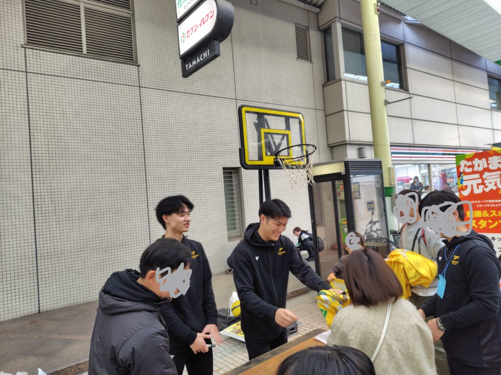 - 商店街のイベントで、香川ファイブアローズがフリースローブースを出展していました。