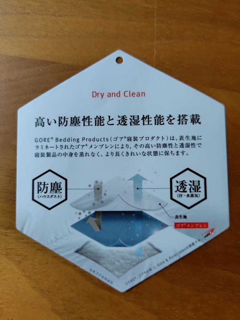 布団の布はGORE-TEX素材にしました。ハウスダストは通さないけれど、汗等の湿度は通すよって素材です。何年も使う物なので、ここまで来たからには出し惜しみしない事にしました。