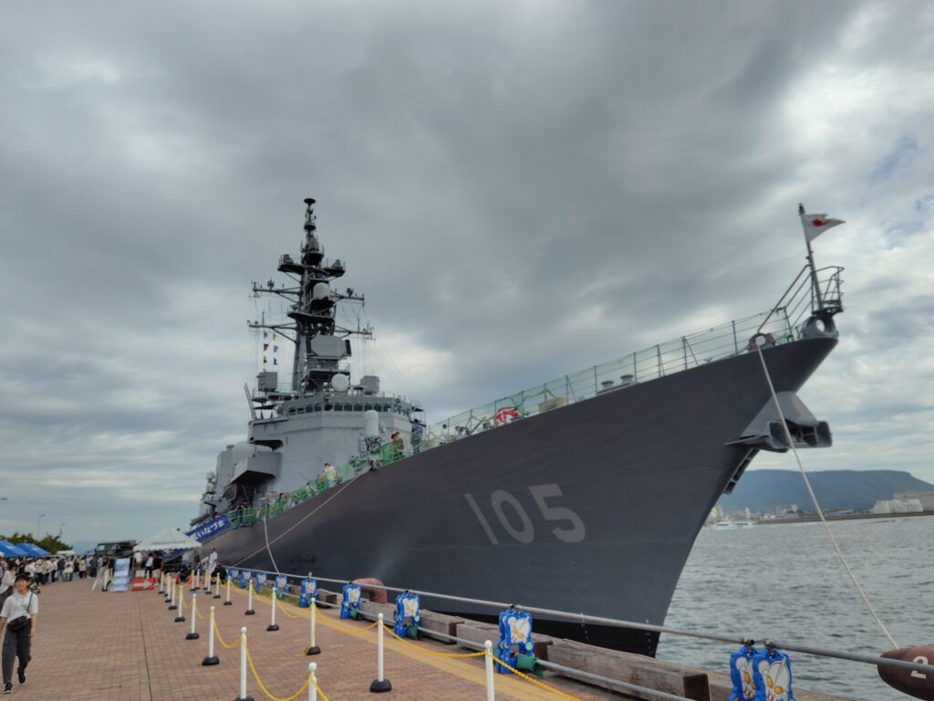 先日の観戦記でも触れたが、息子は会場に入ると基本的にもう外に出ない。けれど護衛艦は観たい。なので