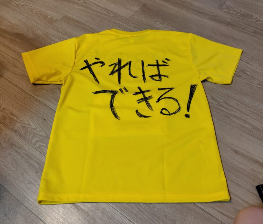 前日もやっぱり左足が痛い。けれど泣き言を言っても始まりません。とりあえず本番で着るTシャツにメッセージの書き込みをして準備をしました。