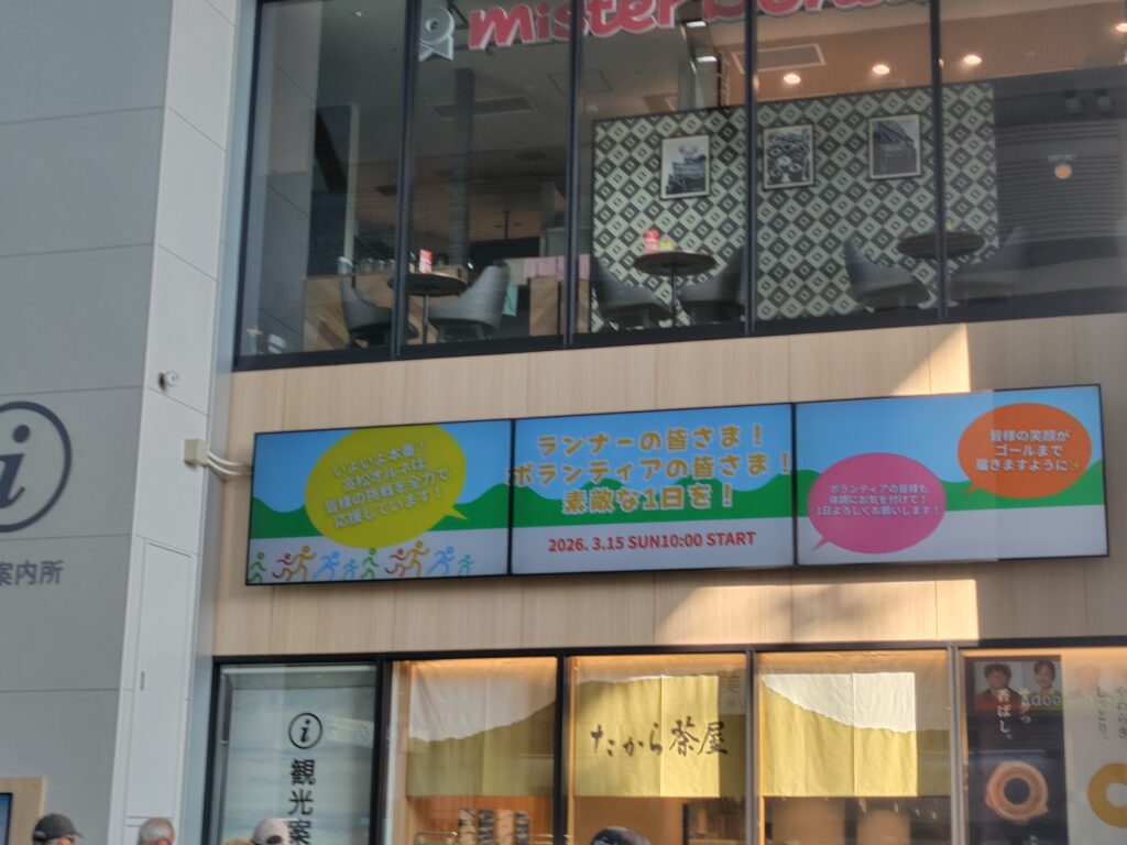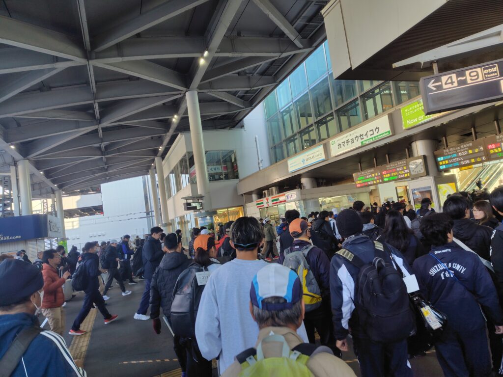 朝、JRで高松駅へ移動。電車の中もランナーだらけ。駅もランナーでごった返してました。みんな速そうに見えます。(身震い)