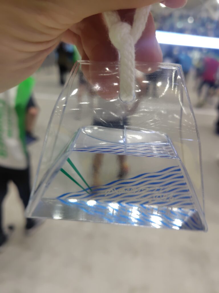 ちなみにここで「じゃあ15分損しちゃうんじゃないの?」と思われる方もいらっしゃるかと思うのですが、マラソン大会は基本的に2つのタイム計測があります。1つ目は、号砲が鳴ってからのタイムである「グロスタイム」。もう1つはランナーのゼッケンの裏に仕込まれているセンサーがスタートラインを越えてから計測の始まる「ネットタイム」です。この2つ目のネットタイムが、その人本来の記録となる訳です・・・ただし私は可能ならば