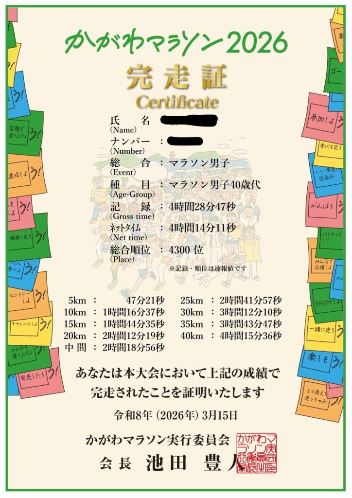 かがわマラソン完走したぞ!