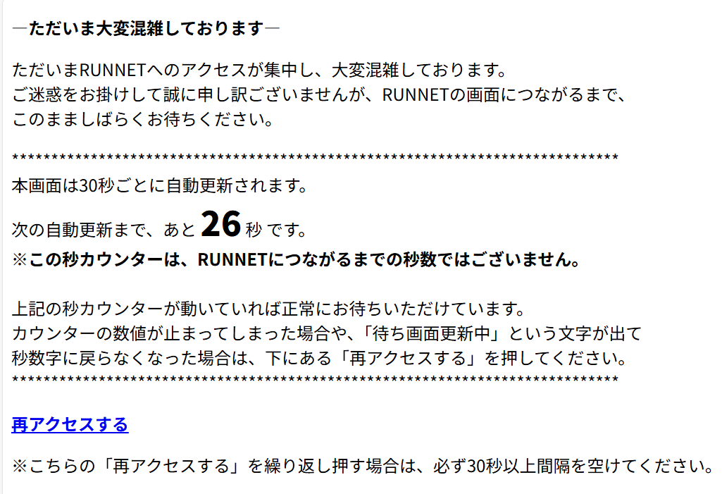 そんなこんなでエントリー受付開始の10/6の正午。家内、息子、それぞれrunnetにログイン済の端末で待機するものの・・・