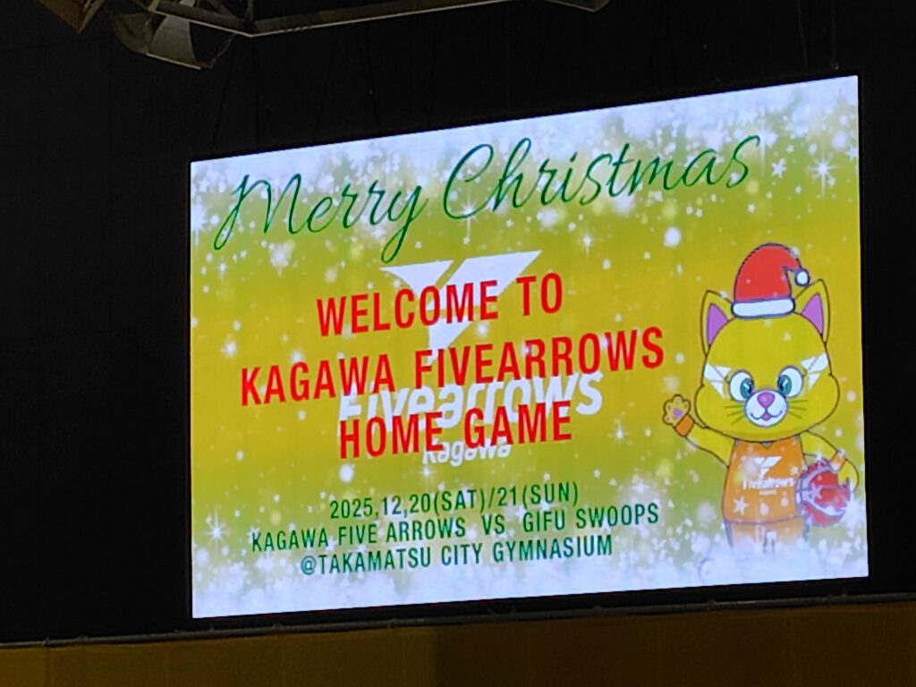 2025年12月20日(土)、B3リーグ香川ファイブアローズVS岐阜スゥープス戦GAME1を現地観戦してきたので、観戦記として書き残す。ここ2週間はAWAY連戦だったので、久しぶりのホーム開催となった。そのAWAYでは2節消化し、3勝1敗とまあここまでの勝率通りの勝敗だった模様。だが目下首位の徳島ガンバロウズに迫るためには、これ以上の取りこぼしは避けたい。我が家も気合を入れて会場の高松市総合体育館へ向かった。