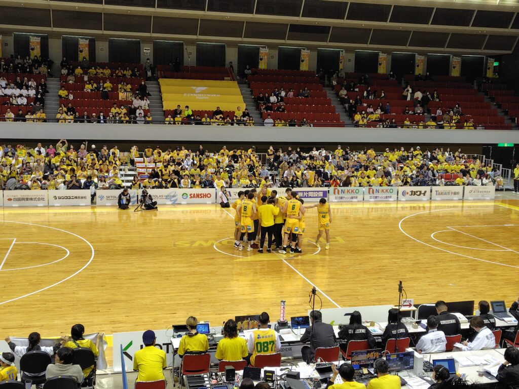 15点差以上ついても、岐阜は最後まで全力プレー。1分を切ってもタイムアウトを取り、絶望的な状況に真正面から向き合う。ファールプレー。試合を投げない。私は感動に震える。勝敗は間違いなく決する。しかしこのコート上では、彼らもまた勝者なのだ。終了を告げるブザーが響く。83-69香川ファイブアローズ勝利。明日もまた、この強者との対戦が待っている。
