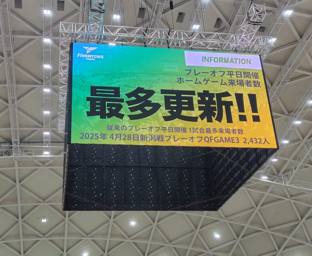 プレイオフ開始前の記事でも綴ったが、過去2シーズンのクォーターファイナルGAME1はどうもお客さんの入りが悪かった印象。当時は土曜日開催、今回は平日開催。出来るだけ事前記事では盛り上げようと煽って書いたが、正直今回も集客面で厳しい結果を覚悟していた。