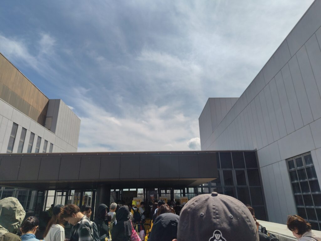 10:30 高松市総合体育館着。先日は指定席だったのだが、本日は自由席の為早めの来場。クラブアローズ会員の特典、先行入場列に並ぶ。