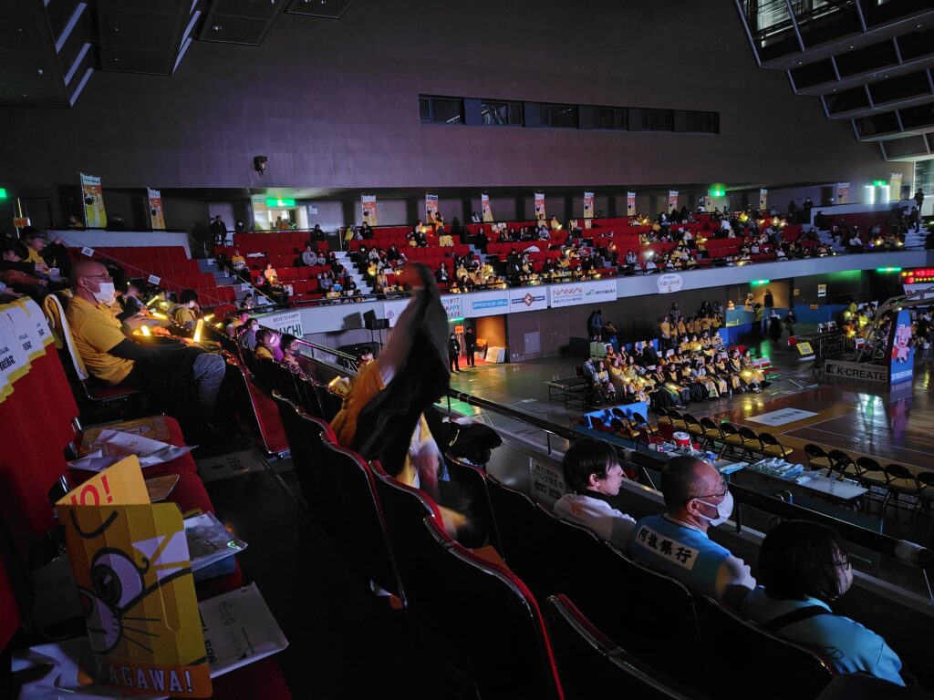 10:30 会場の高松市総合体育館、着。家内と息子は別件で入場が遅れる為、私だけ先行入場の行列に並ぶ。自由席なのが辛い。