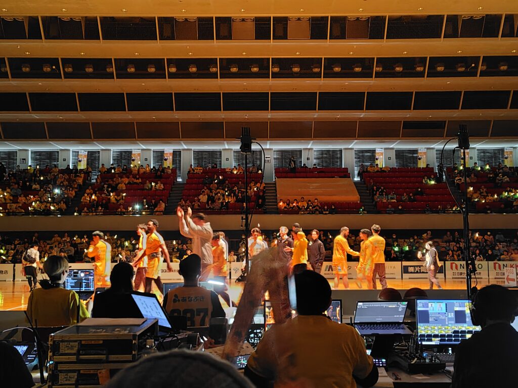 13:10 選手入場。前日苦言を呈した「選手入場時、ホストのブースターの方がガラガラ問題」も、本日は(多少)解消されていました。選手入場はバスケ界のエレクトリカルパレードなので、皆様もお誘い合わせの上、少しでも多くのブースターで選手達を迎えましょう!