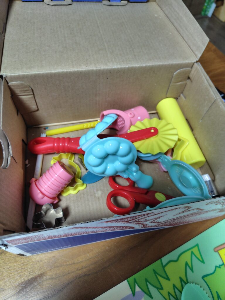 粘土遊びをする板です。何でもいいかと思います。最悪下敷きとかでもいいです。
