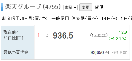 ここで個別株「楽天グループ」【4755】の登場です。全く何も知らない方用に、横の番号は「銘柄コード」と言って似たような名前の個別株と間違えないように振られているユニークなコードですので気にしないで下さいね。