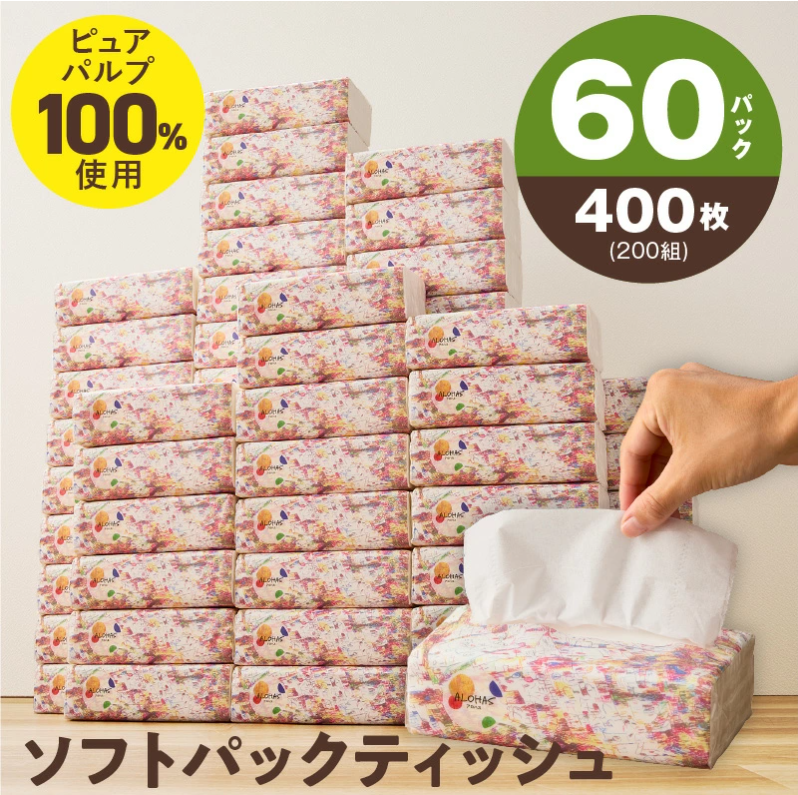 一番大きな理由はこれです。我が家はティッシュボックスケースにティッシュを入れる為、箱はいりません。また、空箱はゴミとして出さなければいけないため、潰そうが何だろうがある程度場所を取ります。こうなると60箱がむしろ仇となります。更に言うと、今の時代何となくエコじゃない気もします。
