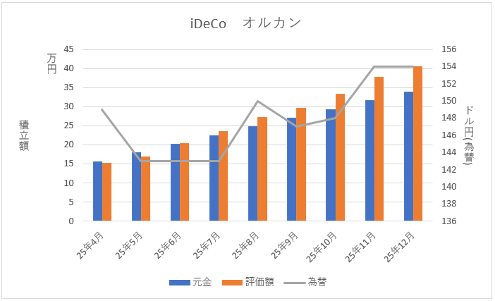 iDeCoは新NISAの「S&P500」とは違い「楽天・プラス・オールカントリー株式インデックス・ファンド」(オルカン)を積み立てている。取得金額339,672円に対して評価額405,559円、評価損益+65,887円、評価損益率は+19.39%となった。