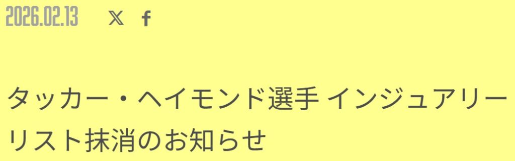 ナタイ選手の契約が終わったという事は、そうですタッカー選手が戻ってくるという事です!