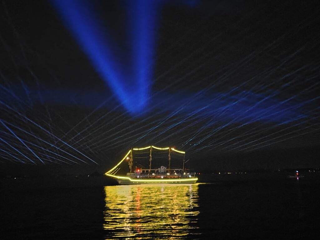 また、今回から観覧用の船が出ており、私はむしろその船に興味津々でした。プロジェクションマッピングを背にして船を撮っている変人は私だけでした。
